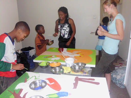 und dazu Kissen, fuer die wir selbst Bezuege naehen und mit den Kindern gestalten. Wir ha-